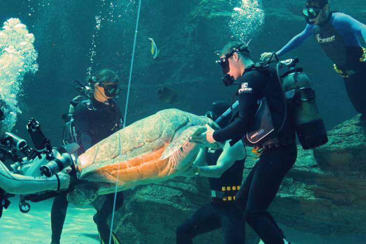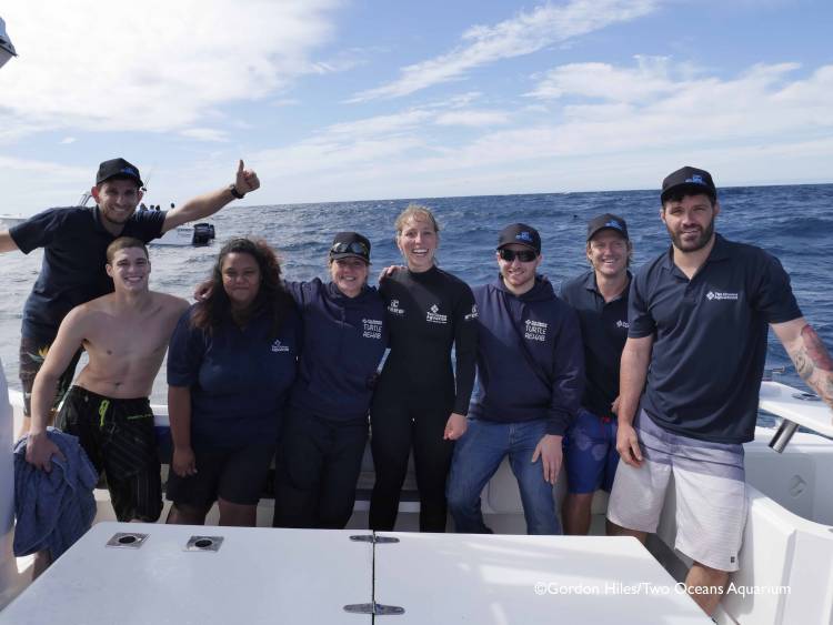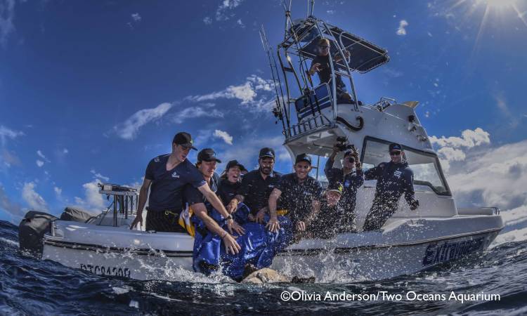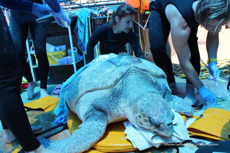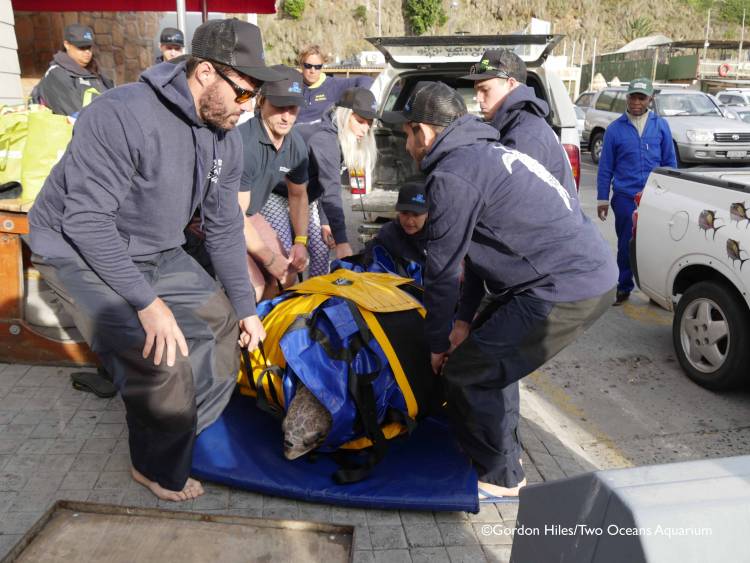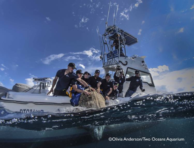 After months of preparation and waiting for the ideal weather conditions, the Two Oceans Aquarium finally released Yoshi, its large resident loggerhead turtle today on 16 December 2017, off the coast of Cape Town.