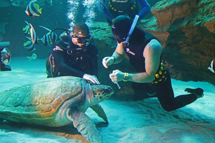 She was then fitted with a satellite tag so that we can track her movements and monitor her behaviour over the next few years – hopefully as many as three! We will share all updates as and when we can right here on the Aquarium website.