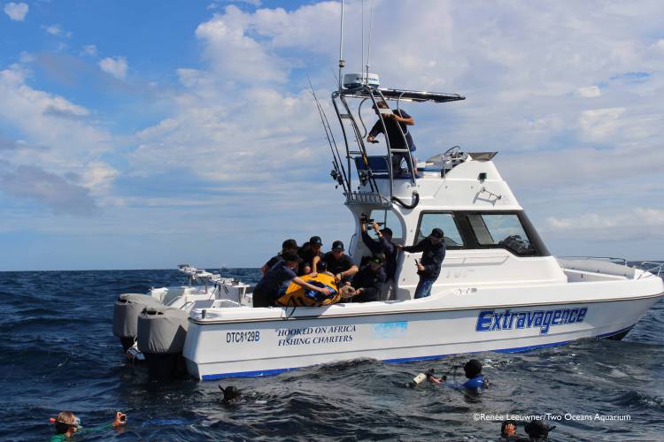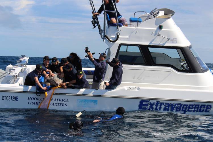 Yoshi, weighing 183kg and measuring 107cm long and 89cm across, was transported by boat to her release point - 27 nautical miles south west of Hout Bay in 20.6°C water.
