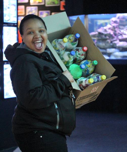 Staff and volunteers are encouraged to bring their home recycling to the Aquarium. We also promote the making of ecobricks, both in the staff canteen areas of the Aquarium, and at home. Single-use plastic bags are banned from the Aquarium premises and all staff and volunteers are encouraged to use reusable bags as well as reusable coffee cups, straws and cutlery.