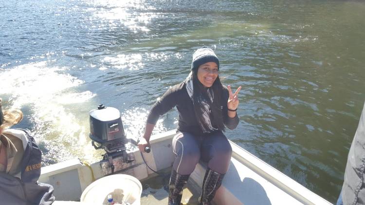 Verena Ras steering the boat towards the jellies (Photo: Yasmeen Parker)