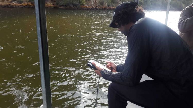 The Two Oceans Aquarium’s very own Krish Lee Lewis measuring the chemical structure of the water column where we collected specimens. (Photo: Dylan S. Moodaley)