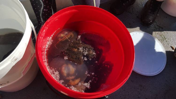 Crambione in buckets after collection. (Photo: Yasmeen Parker)